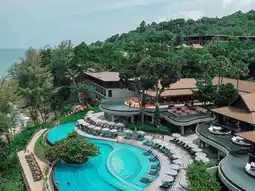 A luxurious cliffside resort with sweeping views of the Andaman Sea. The atmosphere is tranquil and private. 🌿