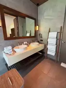 The hotel is not too big, offering a surprisingly peaceful environment! Whether dining, swimming, or joining activities, you won't feel crowded, making the experience truly enjoyable😌. There are over ten villas, each 85㎡, with two room types randomly assigned—both are great options: ground floor villas come with a private pool, while upper floor villas feature a balcony and bathtub, ensuring a comfortable stay.