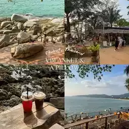 A Phuket cafe with a wonderful atmosphere, right on the beach, lined with shady trees. There are several seating areas, offering both drinks and food. It's a great place to chill. While the cafe isn't air-conditioned, it's never hot, and the breeze blows cool all day long. It's a highly recommended place to relax in Phuket.