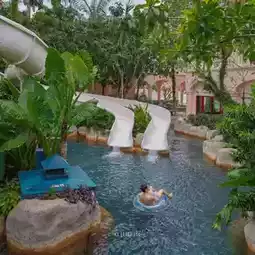 The resort offers a complete range of relaxation options—a large swimming pool, water slides, a water park, a playground, a spa, and a beachfront restaurant, including The Clover. A wide selection of international and local breakfast options are available. The Clover Beach Club & Beachfront rooms offer an open-air beachfront atmosphere, yet are filled with the flavors of a relaxing holiday. 🌟