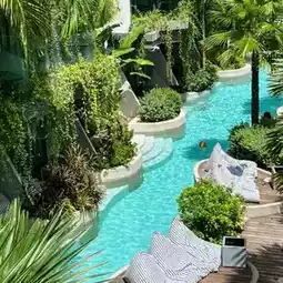 The resort was quiet, ideal for unwinding, and offered various pools (main pool, rooftop pool) that were perfect for taking Instagram-worthy photos! There were also kayaks to play with, and you could enjoy a floating breakfast in the morning. The food at the restaurant was excellent, with plenty of options and great flavors. The staff were friendly, and some even spoke Japanese, making it convenient for Japanese visitors.