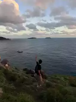 Laem Krathing 🌊✨ A small viewpoint at the tip of a cape between Yanui Beach and Nai Harn Beach in Phuket Province, many tourists describe it as "the most stunning view." The view overlooks the turquoise Andaman Sea, sparkling with crystal-clear water. It's also a particularly romantic sunset spot in the evening.