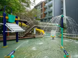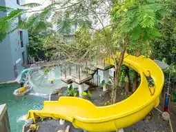 In addition to the main pool, there is also an upper-level pool and a children's pool equipped with a slide and a kids' club for the little ones.