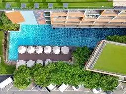 The highlight of this property is the main swimming pool situated at the front of the hotel, featuring a transparent glass wall on the outside. This spot is perfect for taking stylish photos—ladies, you'll definitely get some amazing shots to post on social media!