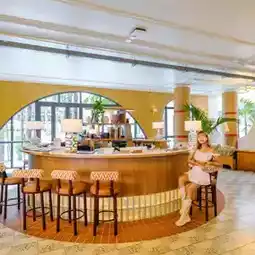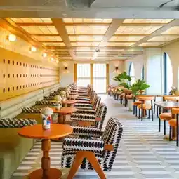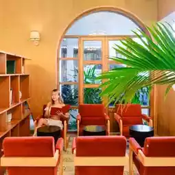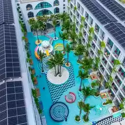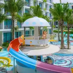 This hotel features a huge swimming pool with a waterslide for all-day fun.
