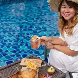 ๐ฆ Outside, the pool area is surrounded by a lush garden, complete with a waterslide and a kid's pool for families to fully relax. If you're looking for a peaceful getaway within walking distance of Jungceylon Mall, cafes, and restaurants, this is the perfect place.