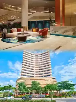 🏨 Located near Central Phuket, the hotel is in an excellent location. 🚗 Whether you're planning to visit both the city and the beach, it's easy to get to. It's just a short drive away! The exterior of the building is modern and contemporary, while the interior is decorated in a simple, yet elegant style. 🩵 Perfect for couples looking for a relaxing getaway or families looking for a relaxing stay.