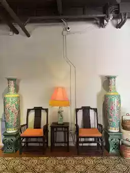 "[The hotel] looks like a time machine… dark mother-of-pearl inlaid furniture, rooms decorated in Peranakan red or Nobel blue."