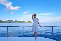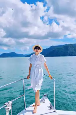 🌅 Watching the sunset: Everyone either sits on the net at the bow or leans against the railing, watching the sun slowly sink westward. The sky’s color changes from bright blue at first, to orange-yellow, and finally is dyed with a vast expanse of brilliant red clouds. The sunset’s afterglow sparkles on the sea, weaving a romantic scene where sea and sky intertwine.