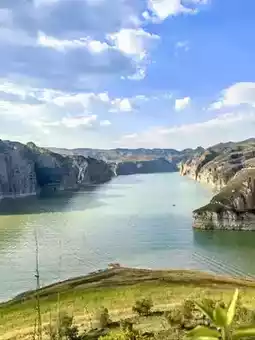 Laoniuwan, where the Yellow River meets the Great Wall, is a breathtakingly vast landscape. The mighty Yellow River flows through the canyon, its steep cliffs on either side creating a majestic scene. The ancient Great Wall winds along the mountaintops, creating a captivating contrast with the river, where history and nature blend together.