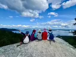 We opted for the black-marked trail, which is slightly challenging, to reach the viewpoint overlooking Lake Pielinen. The serene, deep blue waters of the lake are truly therapeutic. For the return journey, we took the easier red-marked trail to quickly get back to the information center.