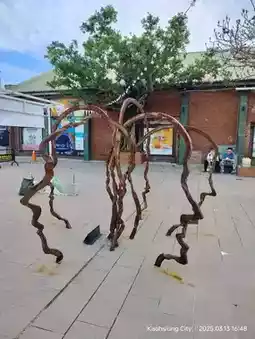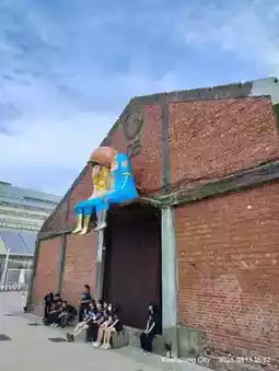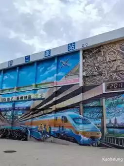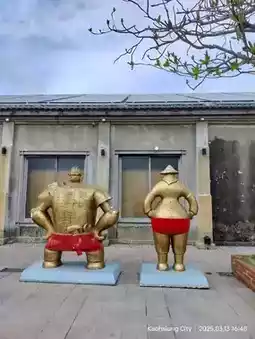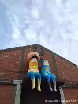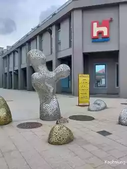 Auntie Aom complained... Pier-2 Arts, a beautiful art work that you shouldn't miss. Take the KMRT Orange Line from Formosa Boulevard Station, just 2 stops, get off at Yanchengpu Station, walk a little bit and you'll arrive. A large Kaohsiung Station model painting, metal work with human faces, cartoon characters, large cubes, art on the walls, water tanks, air compressors, beautiful flowers along the road, very enjoyable to take pictures, the weather is also good. I recommend you to come.