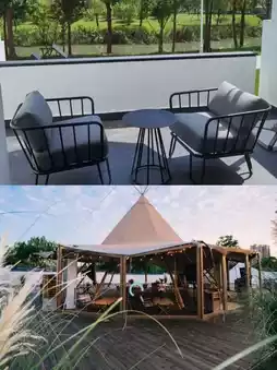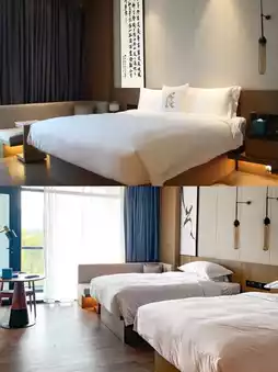 - Hotel Design: The design is based on gray and white tones, cleverly integrating features of Eastern garden landscaping. The outdoor terrace incorporates elements of Jiangnan garden scenery such as green pines, stone walls, and bamboo groves, creating a leisurely and elegant atmosphere. Additionally, the hotel is themed around the culture of Li Shutong, with "Shutong traces" visible throughout the lobby and guest rooms.