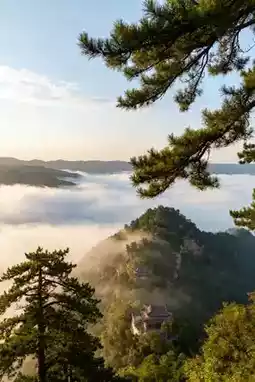 Beneath your feet is a sea of clouds in layers, before your eyes ancient buildings with flying eaves