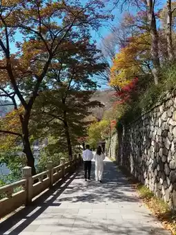 3️⃣Red Leaf Forest Trail: Walking on the leaf-covered mountain path, the crunching sound is super healing 🍂