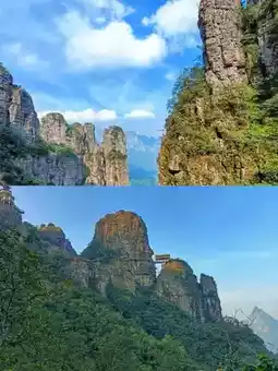 Walking along the mountain road, I saw huge rocks on one side and steep cliffs on the other. Occasionally, a breeze blew by, rustling the leaves, like a scene from a fantasy drama. Here, every step felt like walking in a fantasy world, giving me a sense of transcendence.