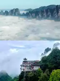 At 9 am, I took a cable car to the mountainside, where I was surrounded by clouds and mists, as if I had entered a fairyland. The rolling mountains loomed in and out of the clouds and mists, as if shrouded in a mysterious veil, full of endless reverie and poetry.