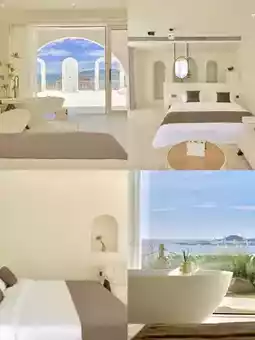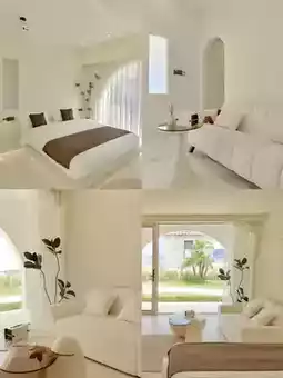 Santorini Mediterranean style, white walls and blue roofs are super romantic. There is a private beach where you can go to play at any time, and there are multiple alien swimming pools. At night, the star swimming pool can artificially create blue tears, and the atmosphere is full.