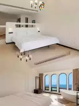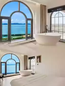 The room has a small courtyard and is super spacious, really incredibly comfortable! Every room has a great view, and the surroundings are quiet and pleasant, with half mountain and half sea views. The room has a large balcony, and you can feel the sea breeze when you open the window. You can watch the sea and enjoy the breeze, and it's perfect for chatting and having a drink on the balcony.