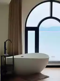 🛏 [B&B] The rooms have floor-to-ceiling glass, and each room is on the sea side, so you can have a panoramic view of the sea while lying in bed. The room I booked has a bathtub 🛁. Lying in the bathtub, taking a comfortable hot bath, and looking at the sparkling sea outside the window, it's really so pleasant!