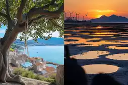 ◦ Free! At sunset, the white windmills turn into a fairy tale against the orange sky.