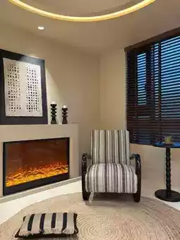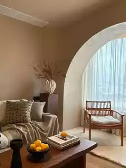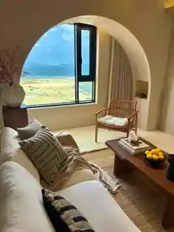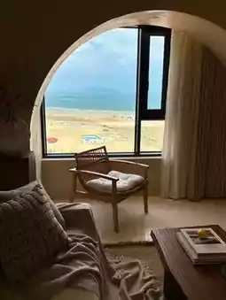 The moment you enter, you’re captivated by the round fireplace corner! The warm yellow flames complement the woven rug and striped armchair. Nestle here to read and drink coffee, with the blue of Longwangtou Beach outside the window, instantly forgetting city anxieties~