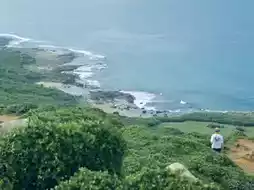 When I arrived at Longpan Park, I was stunned by the magnificent scenery. Unlike ordinary parks with trees and flowers, this place is a vast grassland directly connected to the blue Pacific Ocean. Standing on the edge of the cliff, with the sea breeze blowing in your face, you feel like you are being embraced by nature. Looking down at your feet, you can see steep coral reefs and rough seas. The waves hit the rock walls, making a deafening sound, as if the sea is telling a story in its own language.