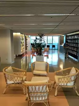 Pingtung County Main Library is located in Millennium Park in Pingtung City. It is a library transformed from a 30-year-old building, which was formerly the Pingtung County Government Cultural Bureau. After renovation, it became the Pingtung County Main Library. Surrounded by trees in Millennium Park, it is known as the 'Library in the Forest.' The library has five floors: the first floor features a lobby with a service desk, a children's reading area, and a nursing room; the second floor houses the general book area, world history and geography section, and an outdoor reading area; the third floor is dedicated to the youth book area with an audiovisual room, a large staircase area, and an internet area; the fourth floor is the Pingtung Literature Museum with language and literature books and a stone house; the fifth floor is an auditorium. On weekends, there is a cultural market outside the library, providing a great place for people to relax and shop in addition to reading books.
