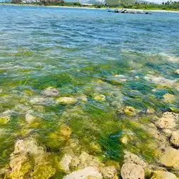 In the morning, we visited Houwan Beach near the National Museum of Marine Biology and Aquarium. The coastline was covered with a lush green carpet of algae. Low tide makes for better photos, but we happened to arrive during high tide. We told the kids that this is the raw material for seaweed! 🤣