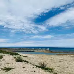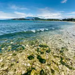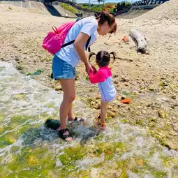 The beach features both sandy and shell-covered areas. As soon as we arrived, we spotted tiny black sea cucumbers, followed by a group of hermit crabs seemingly having a meeting. 😂 While playing with sand on the shore, we even found a toy excavator—what a rewarding trip! The weather was pleasantly cool with a gentle breeze, making the experience truly refreshing. 😌