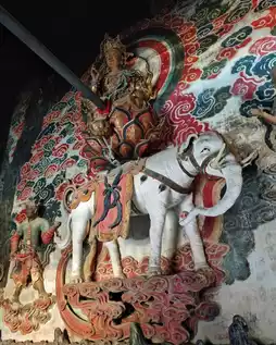 The temple is exquisitely built, with carved beams and painted rafters, and every detail is breathtaking. The carvings on the eaves are lifelike, and the murals on the walls are colorful and full of artistic atmosphere.
