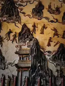 ๐ The Three Buddhas of Buddhism in the Mahavira Hall: The three Buddhasโthe Buddha of the past, Dipankara Buddha; the present Buddha, Shakyamuni Buddha; and the future Buddha, Maitreya Buddha. A 450-square-meter Ming Dynasty gilded mural depicts the journey of Princess Miaoshan to becoming Guanyin Bodhisattva.