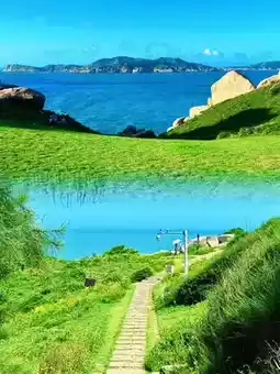 ❶【Sanpanwei】: The island's most picturesque spot, with naturally formed sea meadows like a green carpet dotted with yellow flowers, creating scenes straight out of a Miyazaki film.