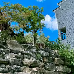 Visitors stroll along the wooden boardwalk, their sachets and tassels fluttering like colorful butterflies. Some squat by the river steps, scooping up the cool water to cleanse the leaves of rice dumplings. The deep green leaves against the reddish-brown rocks resemble a meticulous painting sprung to life from a landscape scroll.