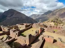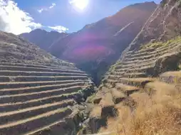 The ruins mainly consist of terraced fields, but there are also remnants of buildings. We climbed up from the town without using a taxi, but honestly, it was more challenging than climbing Rainbow Mountain. The steep stairs with high steps were quite demanding on the muscles. Negotiating prices with local taxis is another option. I've heard the typical fare ranges from 20 to 35 soles, but this depends on your bargaining skills.