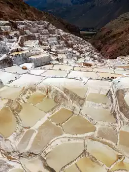 • Maras Salt Mines: Located near Cusco in the Sacred Valley, these salt terraces have been formed by natural salt springs in the Andes for thousands of years, shimmering like mirrors under the sun. You can visit the salt mining process and learn about the local traditional salt harvesting culture.