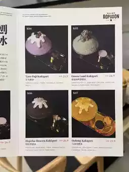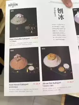 To complement their donburi bowls, Ropudon also offers a selection of kakigori (shaved ice) desserts. The Pistachio Kakigori, with its rich pistachio flavor and finely shaved ice, makes for a refreshing treat to end your meal.