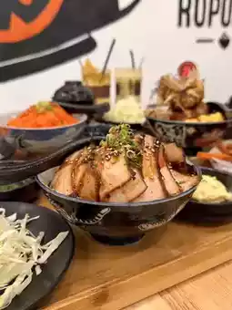 Ropudon’s signature donburi bowls are generously portioned, served with premium Japanese Calrose rice and accompanied by classic side dishes like miso soup, shredded cabbage, potato salad, bean sprouts, and kelp. Some standout donburi options include: