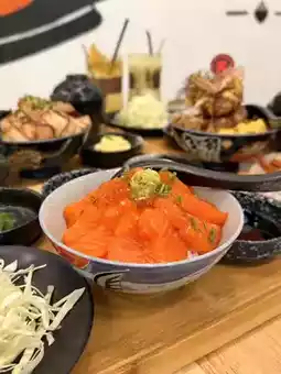 Salmon and Ikura Don: Fresh, flaky salmon topped with savory ikura (salmon roe), delivering a burst of flavor with each bite.
