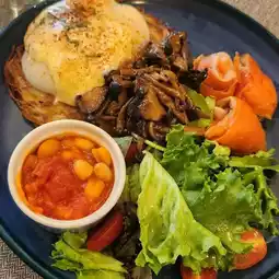 Cosy with indoor and outdoor seating available. Customer service is warm. They checked on us a couple of times to see how we were doing. Food is excellent and beautifully prepared. As I am allergic to buckwheat I had the burger. Which was quite a big meal compared to the galettes which my family had.