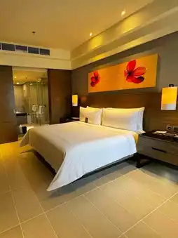 Renaissance Johor Bahru Hotel is an upscale, 5-star waterfront retreat nestled close to the city’s lively districts and the bustling customs complex to Singapore. Elegant, spacious rooms and suites feature contemporary décor, plush bedding and sweeping views of the Marina or Johor Bahru skyline. Guests can enjoy a heated rooftop pool, a well‑equipped fitness centre, and soothing spa treatments. Dining options range from international buffets and sophisticated à la carte menus to casual poolside snacks. Situated within walking distance of shopping malls, cafés and local attractions, it blends comfort, convenience and modern luxury in one refined destination.