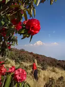 ✅ Rhododendron and Snow-capped Mountains: Mid to late March is the best time to see rhododendron in bloom from Ghorepani to ABC, a visual feast!