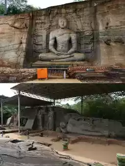 Mainly Gal Vihara, with four Buddha statues carved from a single large rock.
