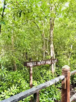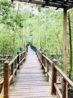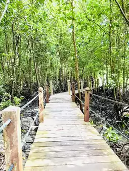 🌱 Mangrove Magic – Wander along peaceful wooden boardwalks surrounded by lush mangrove trees and wildlife — including mudskippers, crabs, and even monitor lizards.