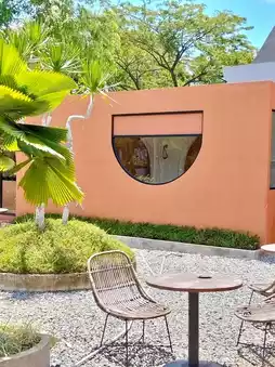 The wide, open concrete plaza leading up to the entrance suggests that the location is designed to be spacious and welcoming, perhaps accommodating outdoor seating or events. The overall impression is one of a stylish, well-designed venue—likely a café, restaurant, or unique event space—that capitalizes on natural light and an appealing, warm color scheme. It looks like the perfect spot to relax and enjoy the sunny weather. The name itself, Lopika Heritage, hints at a place that might serve traditional items or honor a local history within its modern space.