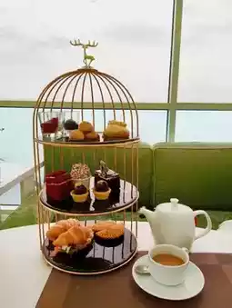 The high tea set was presented beautifully in a three-tier birdcage stand, filled with a variety of sweet and savory treats. From flaky croissants to colorful desserts, every bite was delightful. Paired with a pot of warm tea, it was a combination of flavors that felt both indulgent and comforting.