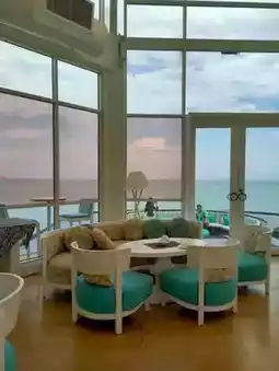 The cozy interior, with its white and turquoise theme, added to the serene vibe, while the surrounding glass windows allowed uninterrupted views of the water and sky. It was the perfect setting to unwind, soak in the calmness, and enjoy good food.