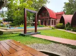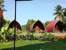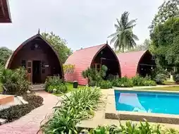Guests love the rumah lumbung (rice barn) design—wooden, igloo-shaped chalets surrounded by lush greenery and fruit trees, giving a tranquil, village‑like atmosphere .