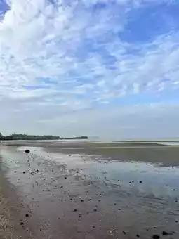 As I walked across the golden flats, the sea still sleeping on the horizon, the breeze carried the last whispers of night. Each footprint felt like a pause in time, soft and cool beneath my soles. The sunlight wasn’t in a rush either—it painted the world in lazy amber strokes, touching the shore as gently as a memory.
