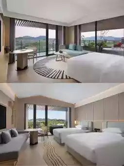 🌸Surroundings: The architecture is in the style of traditional Jiangnan residences, with black, white, and gray tones, plus bridges, flowing water, green plants, and rockeries, creating a strong atmosphere of ink wash Jiangnan. The fireplace in the lobby bar is super stylish, with a 100% photo op rate!